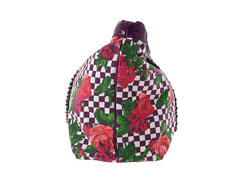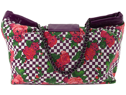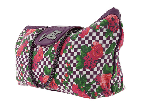 O saco de ombro do estilo do tote de Betseyville? feito de tela de algodão checkered com um projeto floral e a patente sintética aparam